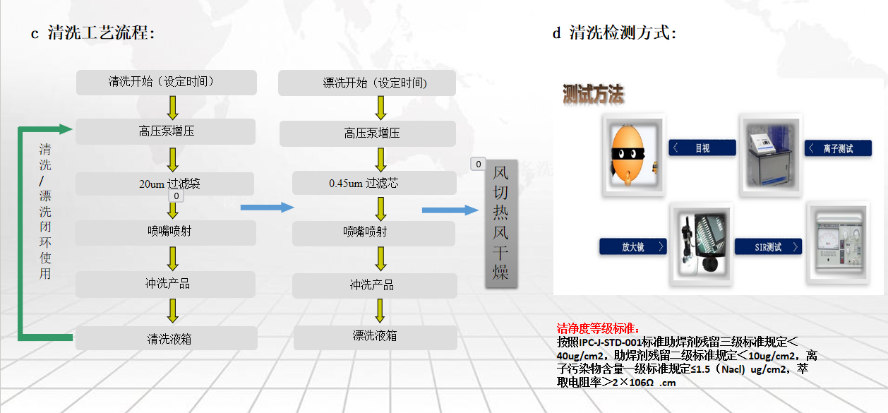 5、全面的清洗系统:标配的稀释液槽\漂洗水槽加热系统,提升了清洗效率,缩短清洗时间,兼容运行水洗或化学清洗,针对SMT;THT的PCBA表面残留的松香、焊音等有机、无机污染物进行彻底有效的清洗;